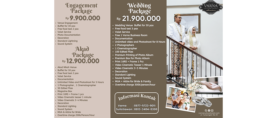 Wujudkan momen pernikahan impian Anda di Hotel Varna Surabaya, tempat di mana keanggunan klasik berpadu dengan sentuhan romantis.
